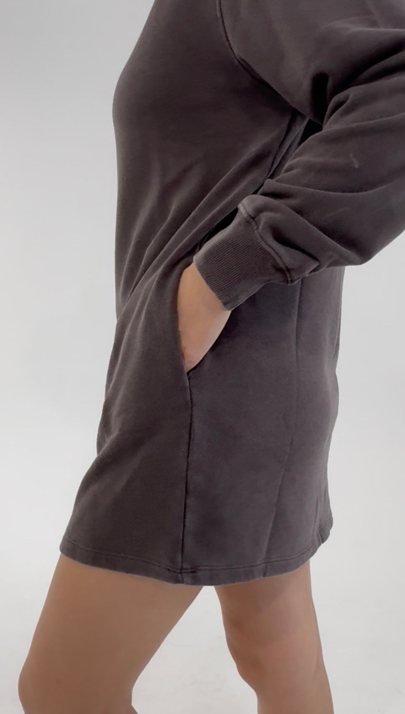 With subtle raw-edge seam details and a slightly longer hemline for easy coverage, it’s made for throwing on and getting out the door (or staying in and staying comfy). Pair it with sneakers for a casual look, or layer it under a denim jacket for that “off-duty model” vibe.