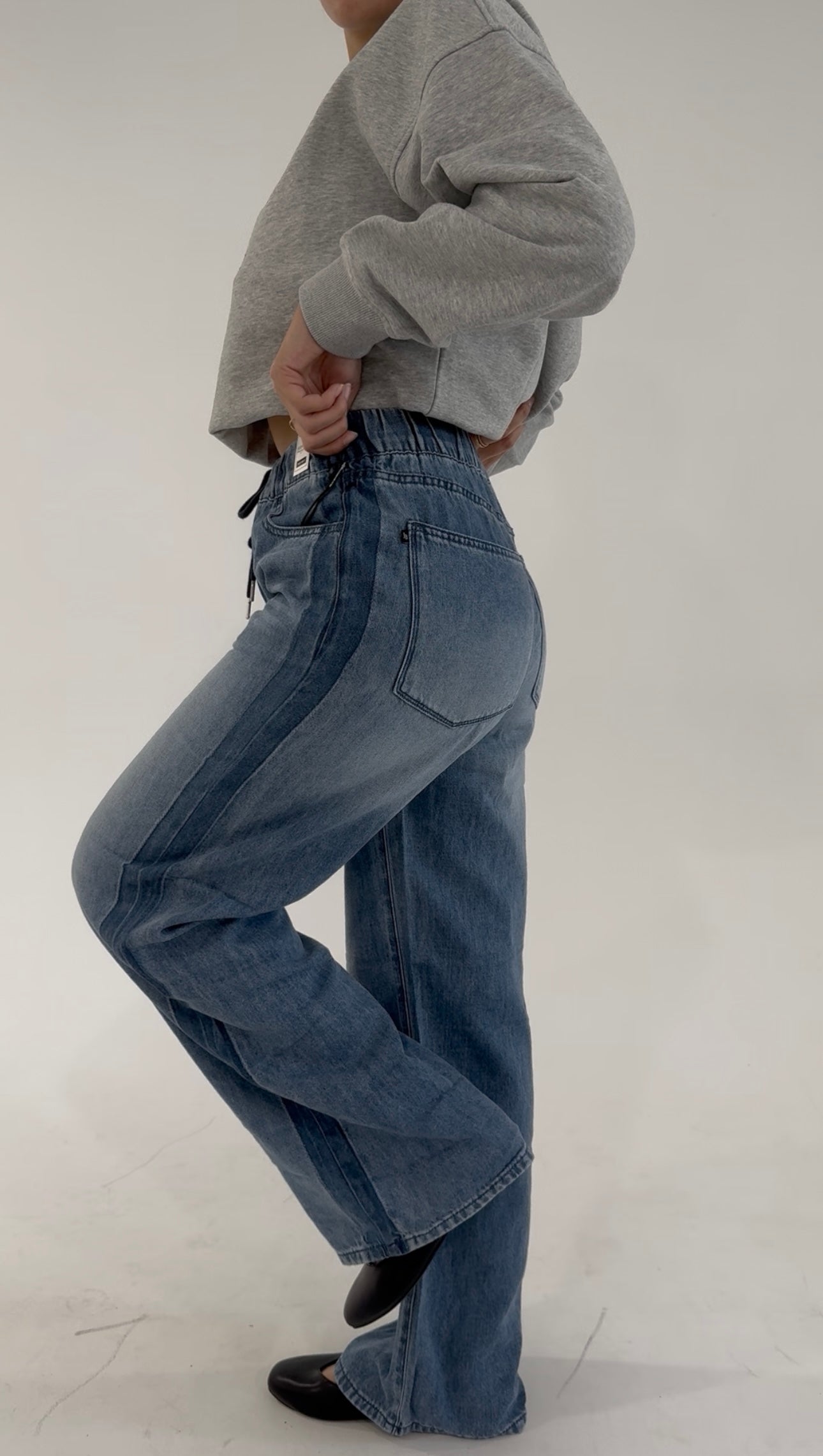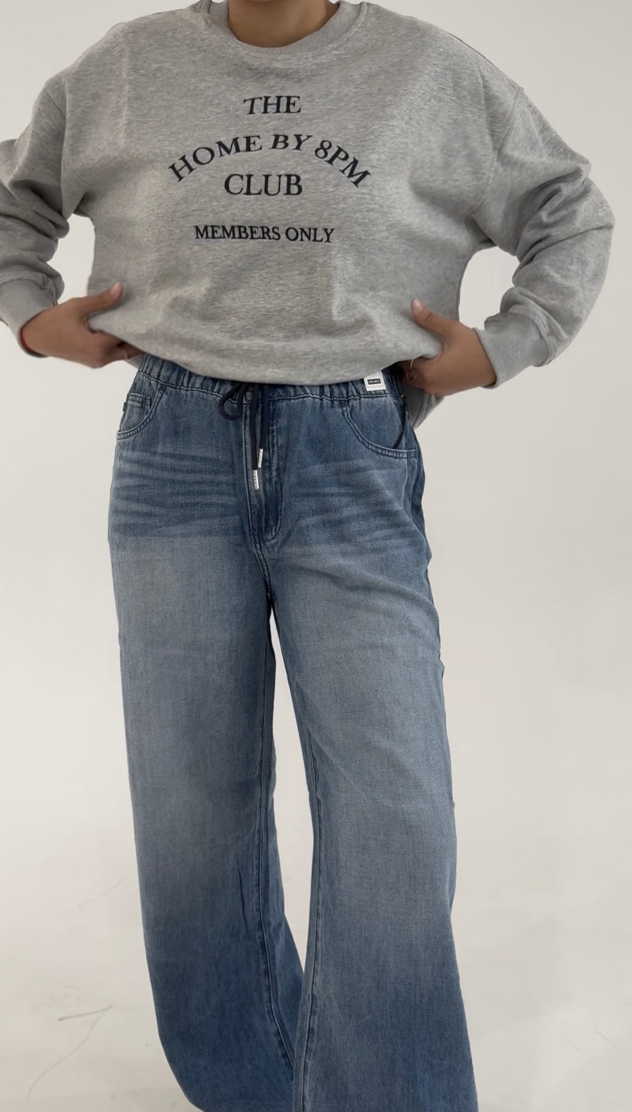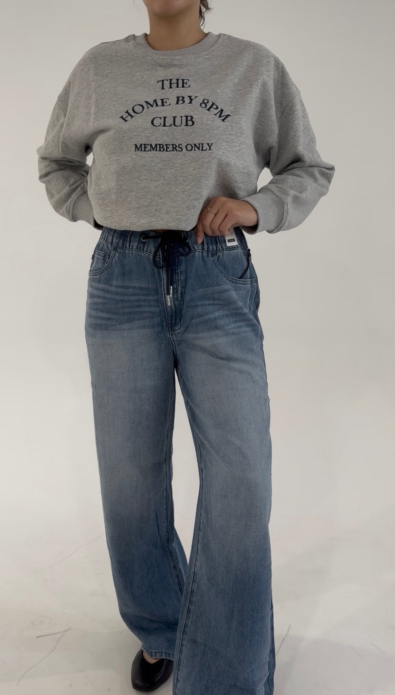 Featuring a high-rise fit and a relaxed wide-leg silhouette, they’re finished with an adjustable drawstring waist for that perfect custom fit. The light-medium wash gives them a worn-in charm, while subtle fading and whiskering add effortless dimension. Whether you’re heading to brunch, running errands, or enjoying a quiet morning coffee, these jeans make everyday dressing feel easy and elevated.