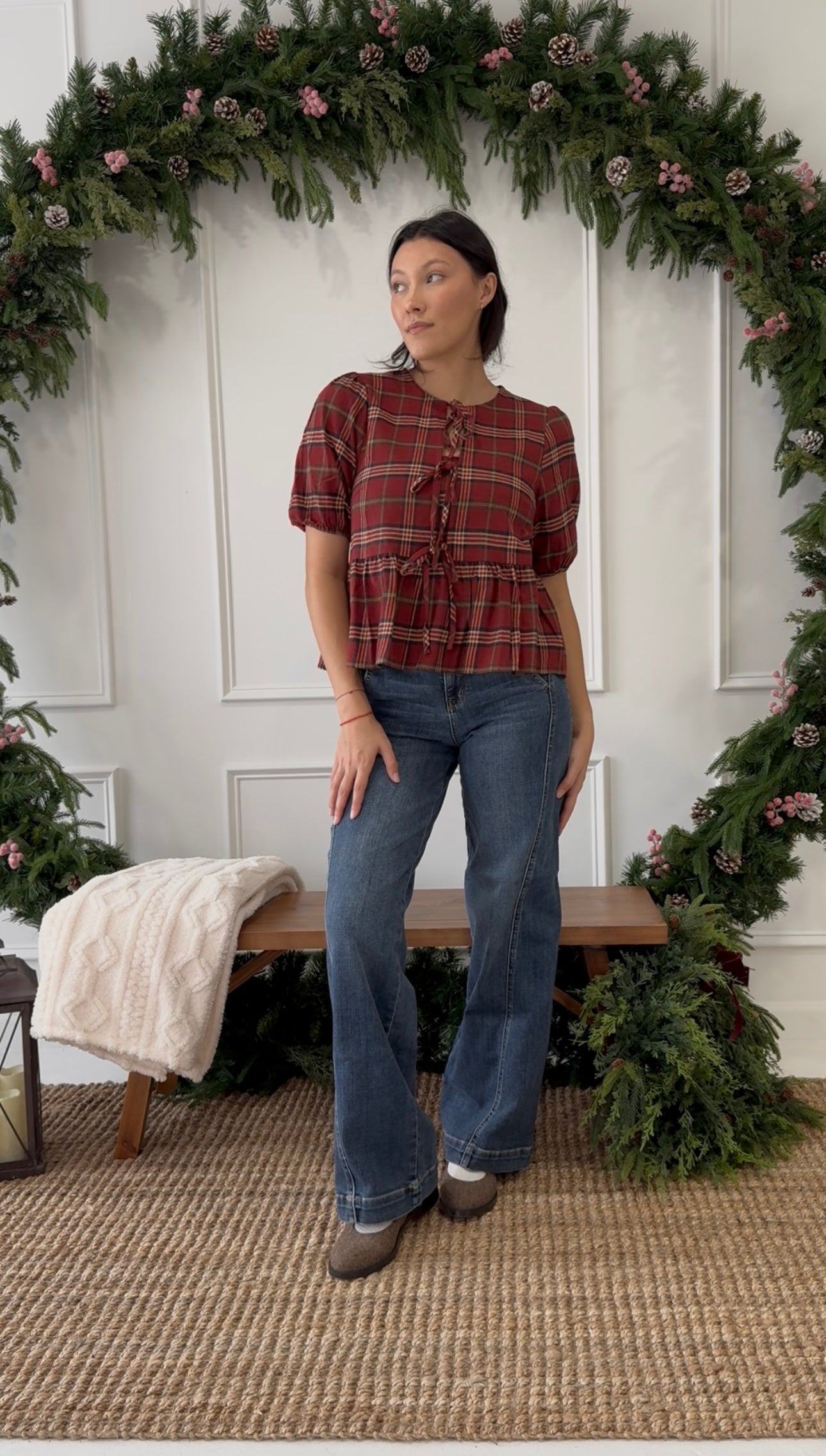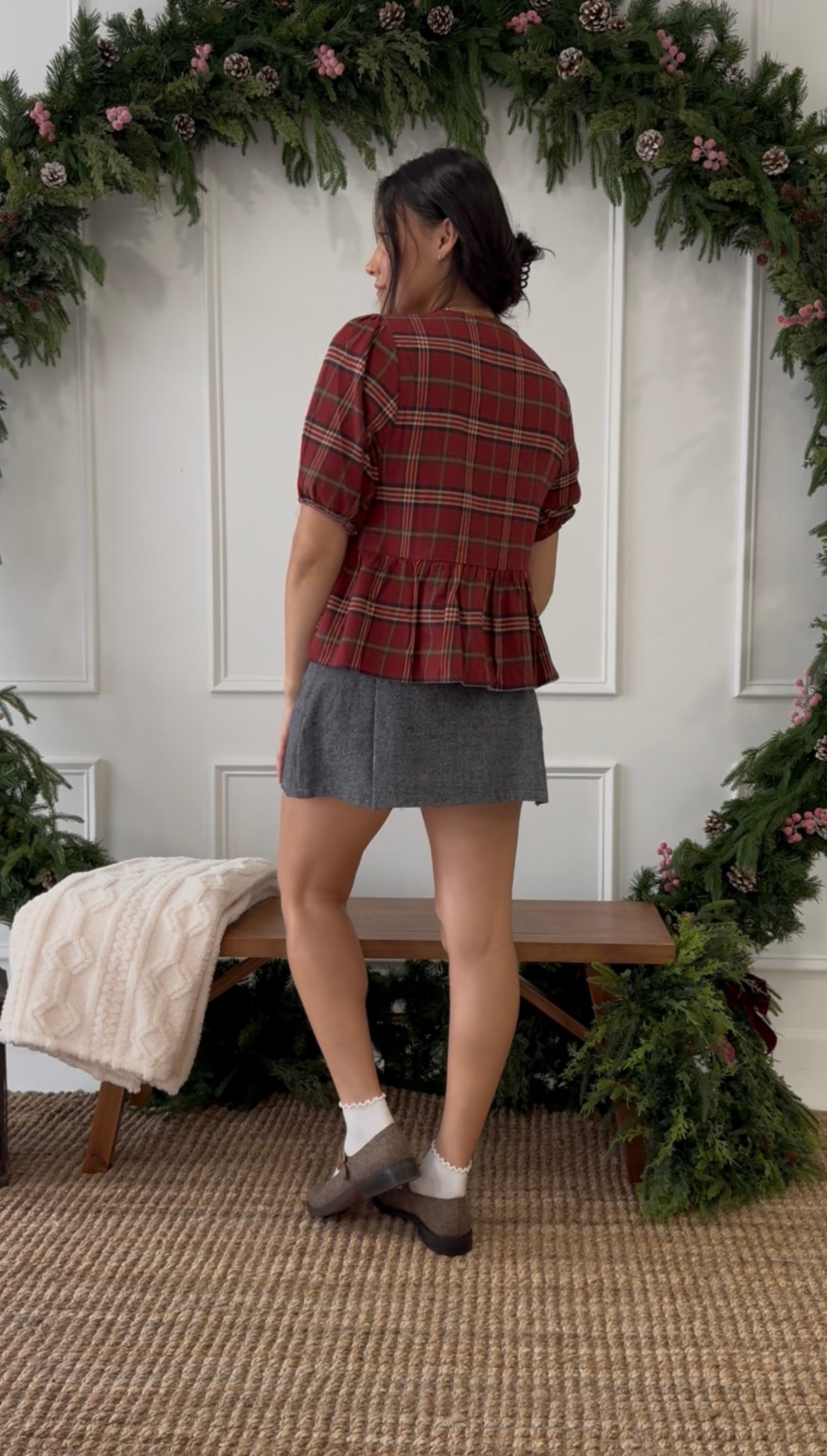 Style it with your favorite high-waisted jeans, layer it under a cardigan, or pair it with boots for a timeless holiday look. Whether you’re sipping cider by the fire or heading to a holiday market, this plaid peplum blouse is your go-to for seasonal style.