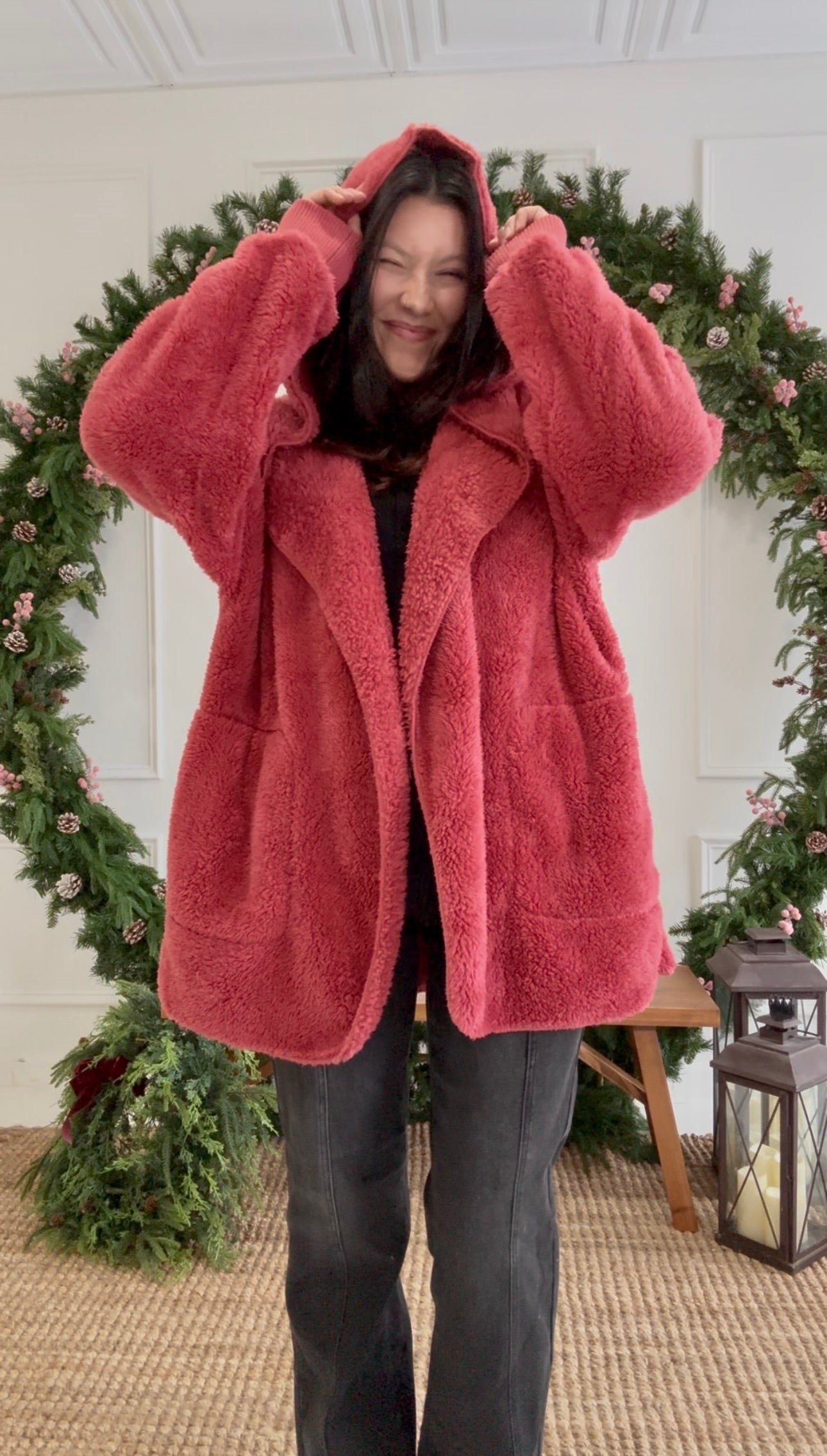 Designed with a relaxed fit and open-front silhouette, it drapes effortlessly over everything from leggings and tees to jeans and booties. The thick, teddy-textured fleece provides all-day warmth without compromising style, while the subtle ribbed cuffs offer just the right amount of structure.