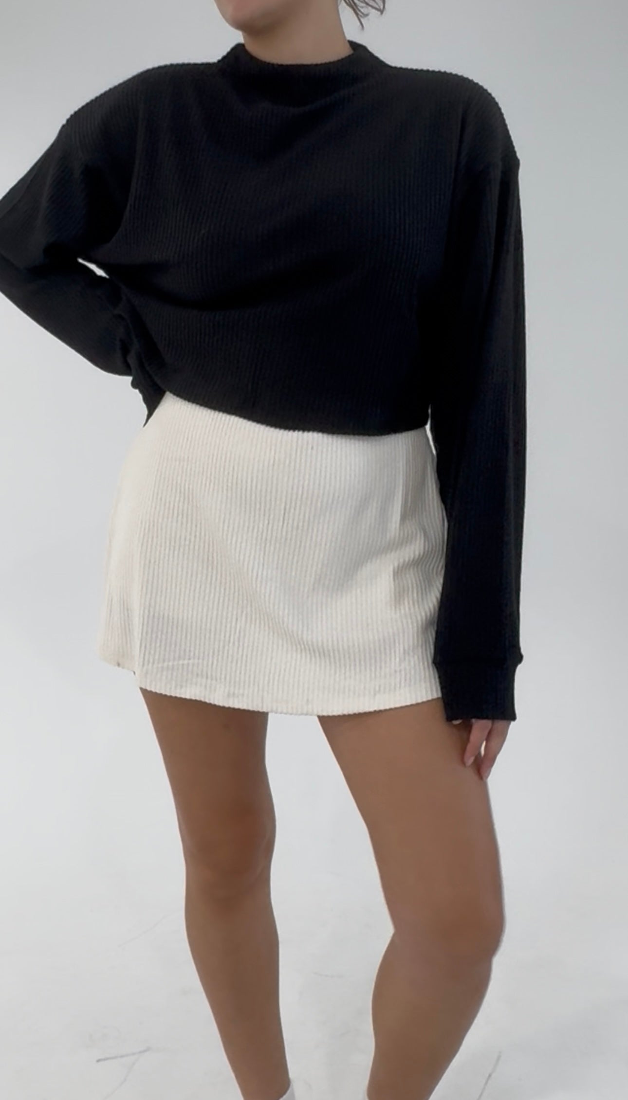 The pull-on waistband keeps things smooth and comfy, while the neutral ribbed texture gives it a luxe, elevated feel. Whether styled with the Soft Intentions Cropped Sweater for a matching set moment or paired with a simple tee, this skort adds an effortlessly cool twist to your everyday wardrobe.