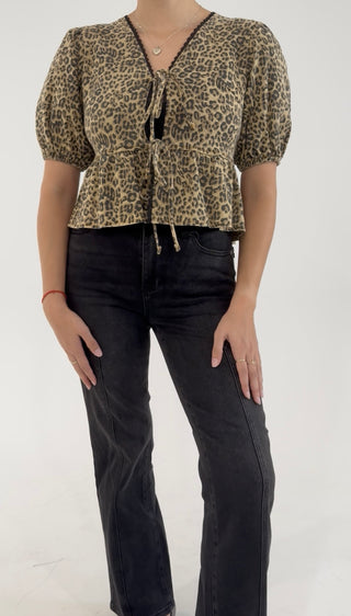 “Long-sleeve leopard print mesh top with ruffled mock neck and slim fit for a chic, stylish look.”