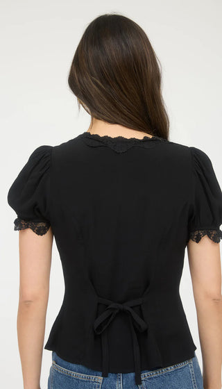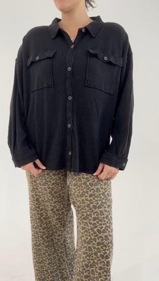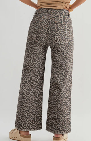 “Back view of long-sleeve leopard print mesh top with ruffled mock neck and slim fit silhouette.”