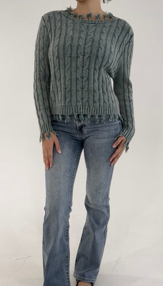 Burnt orange pullover with raw-edge plaid patches, paired with classic blue jeans for a cozy, rustic autumn look.